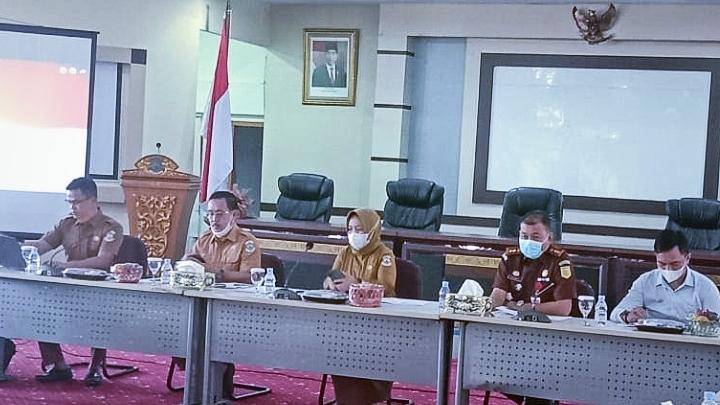 BANGKA BELITUNG TERKINI - PANGKALPINANG - Sekda Kota Pangkalpinang, Radmida Dawam mewakili Walikota Pangkalpinang bersama Forkominda Kota Pangkalpinang mengikuti Zoom Meeting dari Gedung Pancasila Jakarta Pusat Dalam Acara Upacara Peringatan Hari Lahir Pancasila Tahun 2021 yang dipimpin langsung oleh Presiden RI, Joko Widodo, di ruang Rapat Kantor Walikota Pangkalpinang Selasa (01/06/2021).