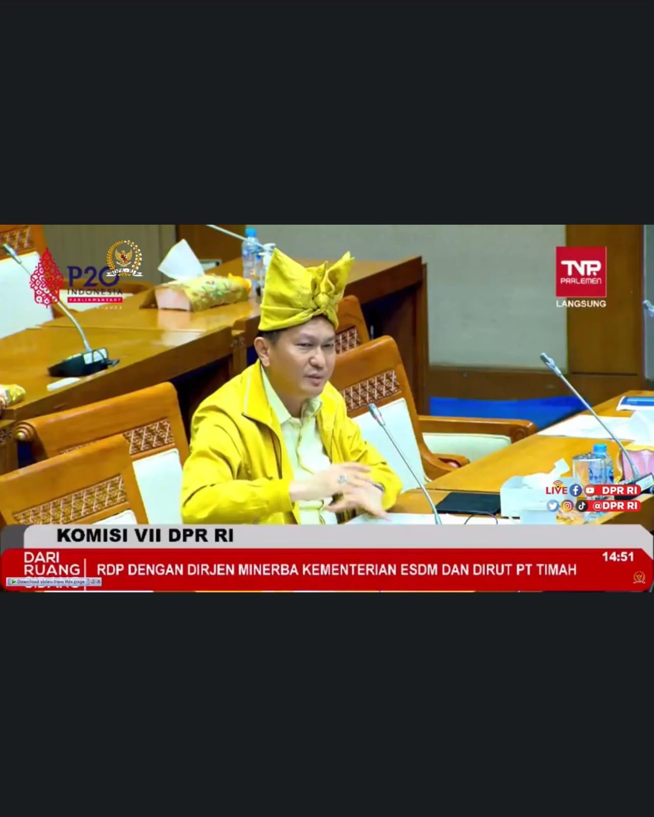 “Mau tanya saja ini, karena lagi rame dibicarakan di Bangka ini masalah pembentukan Satgas Ilegal Minning mungkin bisa dijelaskan Pak Dirut, Pak Dirjen kalo di Bangka orang berwacana menduga-duga kenapa Pak Aon (pelaku tambang) bisa menjadi ketua satgasnya, bukan dari penegak hukum dan bukan sektor pemerintahan. Dan lalu bagaimana posisi kolektor dimata Pak Dirjen?," tanya Bambang Patijaya dalam RDP.