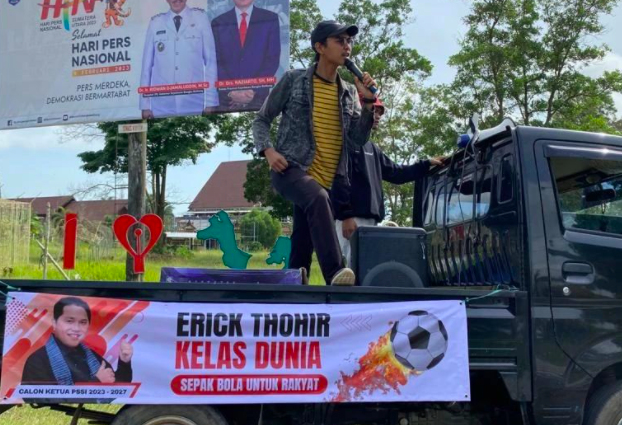 Babel, Masyarakat pecinta sepak bola di Kota Pangkal Pinang, Bangka Belitung melakukan cara yang unik dalam mengekspresikan dukungan kepada calon ketua umum PSSI Erick Thohir dalam KLB PSSI yang akan diselenggarakan pada 16 Februari 2023.
