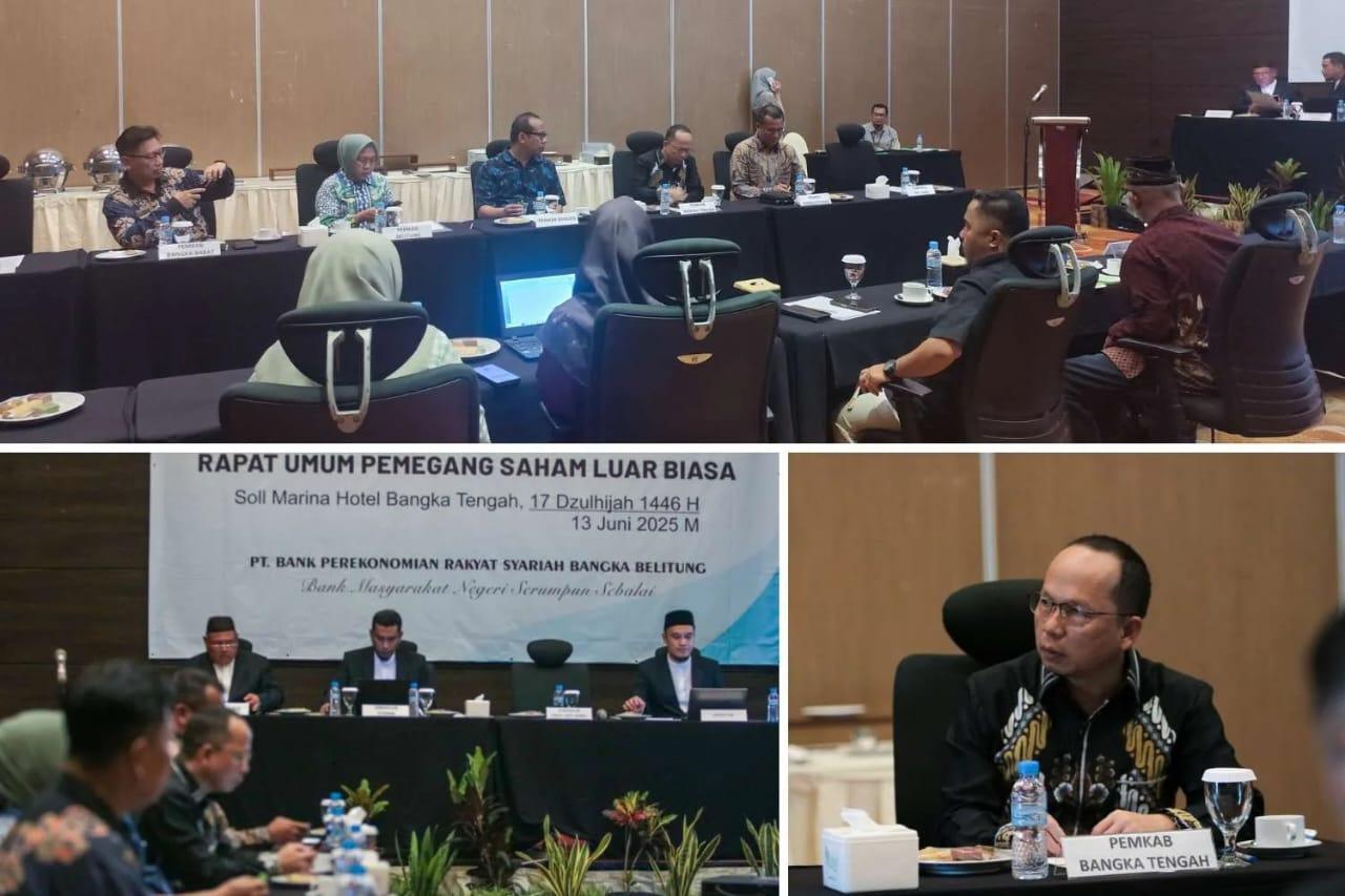 BANGKA TENGAH, BANGKATERKINI– Bupati Bangka Tengah, Algafry Rahman, menghadiri kegiatan Rapat Umum Pemegang Saham (RUPS) Tahun Buku 2024 dan RUPS Luar Biasa PT Bank Pembiayaan Rakyat Syariah (BPRS) Bangka Belitung, bertempat di Ballroom Soll Marina Hotel, Kecamatan Pangkalanbaru, Jumat (13/06/2025).