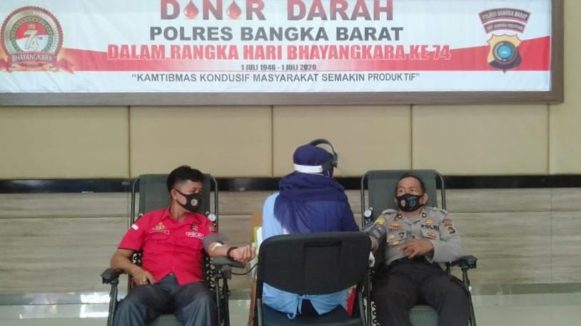 Berita Bangka Belitung - Bangka Terkini, Bangka Barat --- Polres Kabupaten Bangka Barat (Babar) sumbangkan sebanyak 49 kantong darah kepada Unit Tranfusi Darah Palang Merah Indonesia (UTD PMI) Pangkalpinang .