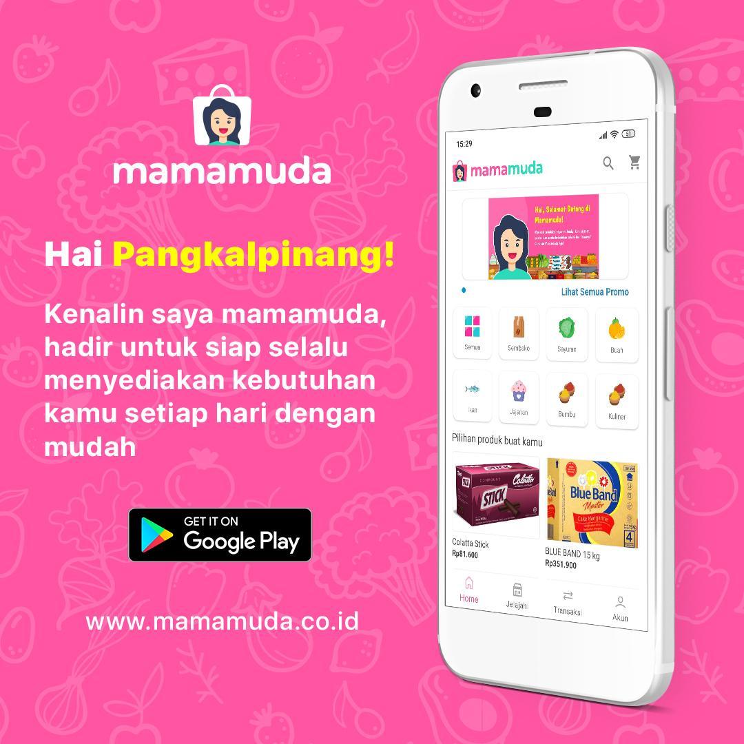 Buat anda yang belum punya aplikasi MamaMuda bisa dwonload di link : https://play.google.com/store/apps/details?id=id.mamamuda atau bisa download di Playstore handphone anda dan bisa juga buka website : www.mamamuda.co.id bagi anda pengguna IOS.