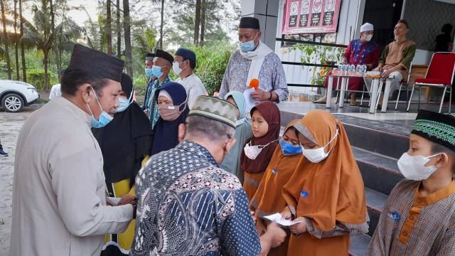Sebelum tausiyah acara dilakukan dengan memberikan santunan kepada tunanetra dan anak yatim.