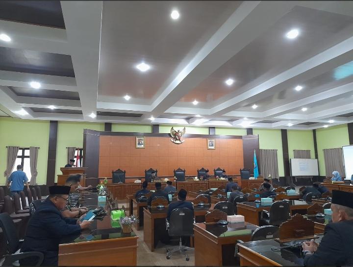 BANGKA TENGAH, BANGKA TERKINI - DPRD Kabupaten Bangka Tengah menggelar Rapat Paripurna Penyampaian Laporan Keterangan Pertanggungjawaban (LKPJ) Bupati Bateng Tahun Anggaran 2022 dan Penyampaian Raperda Kabupaten Bateng tentang Pajak Daerah serta Retribusi Daerah di Ruang Rapat Paripurna DPRD Bateng pada Senin (27/3/2023).