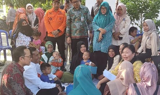 Tampak Pj Gubernur bersama istrinya Maya Pasaribu dan ditemani langsung oleh Bupati Bangka Tengah, Algafry Rahman dan Ketua TP-PKK Bangka Tengah, Eva Algafry langsung menghampiri warga dan anak-anak.
