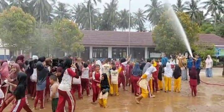 Diakhir kegiatan, peserta didik mandi bersama di halaman sekolah dengan semprotan air dari mobil pemadam kebakaran yang berada di jalan depan sekolah.