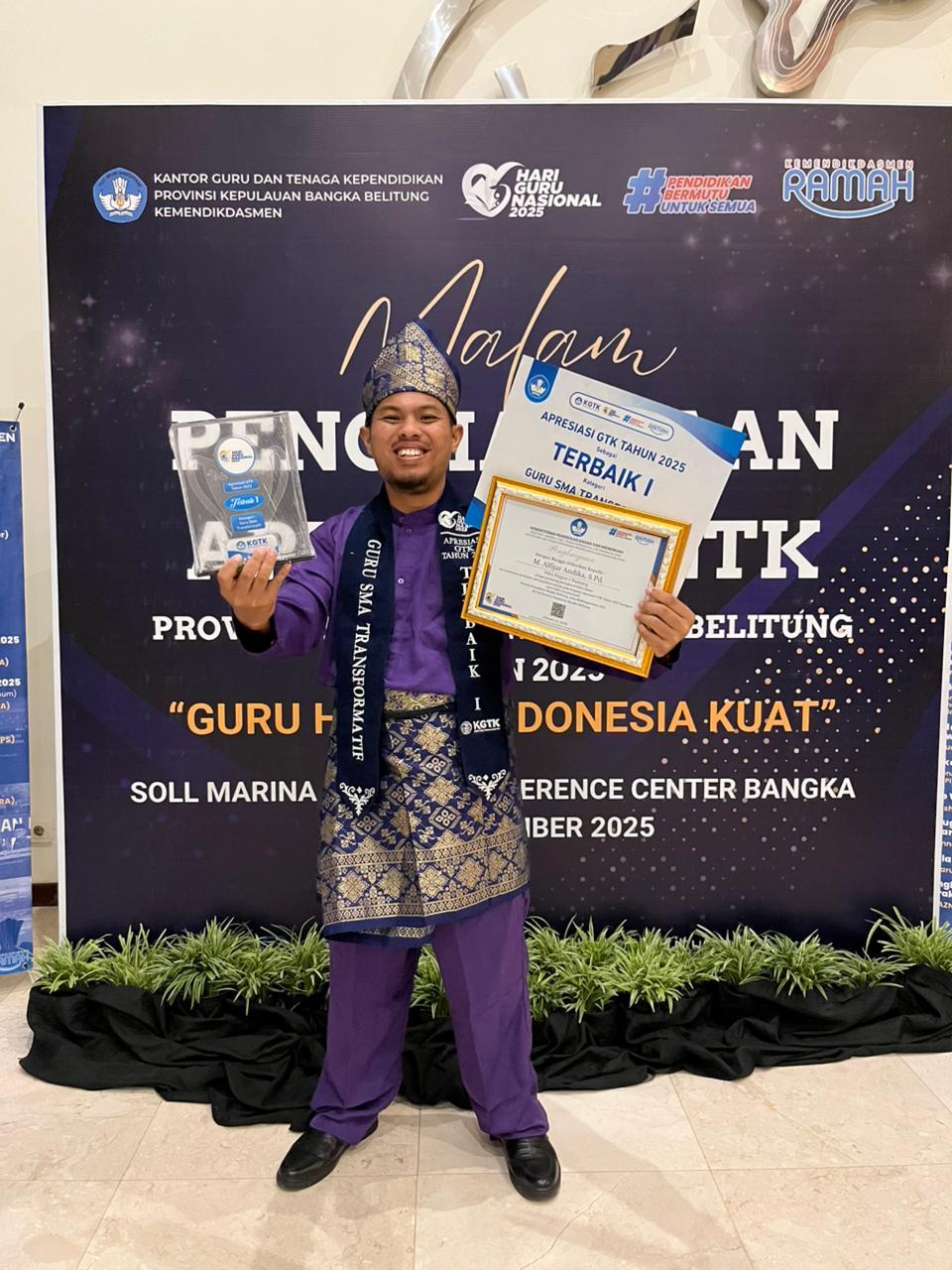 BABEL, BANGKATERKINI – Dunia pendidikan di Kabupaten Bangka Tengah patut berbangga. Salah seorang pendidik terbaiknya, M. Alfijar Andika, S.Pd., guru di SMAN 1 Namang, berhasil meraih anugerah bergengsi sebagai TERBAIK 1 GURU TRANSFORMATIF SMA TAHUN 2025 tingkat Provinsi Kepulauan Bangka Belitung.